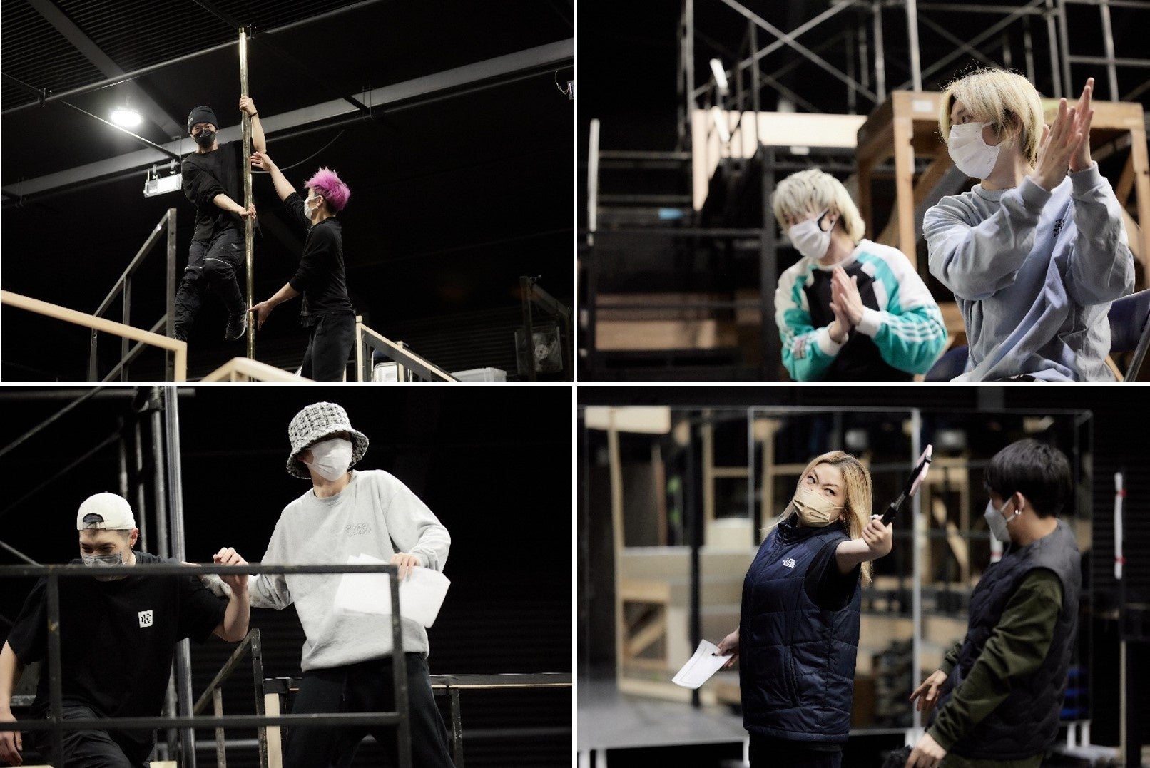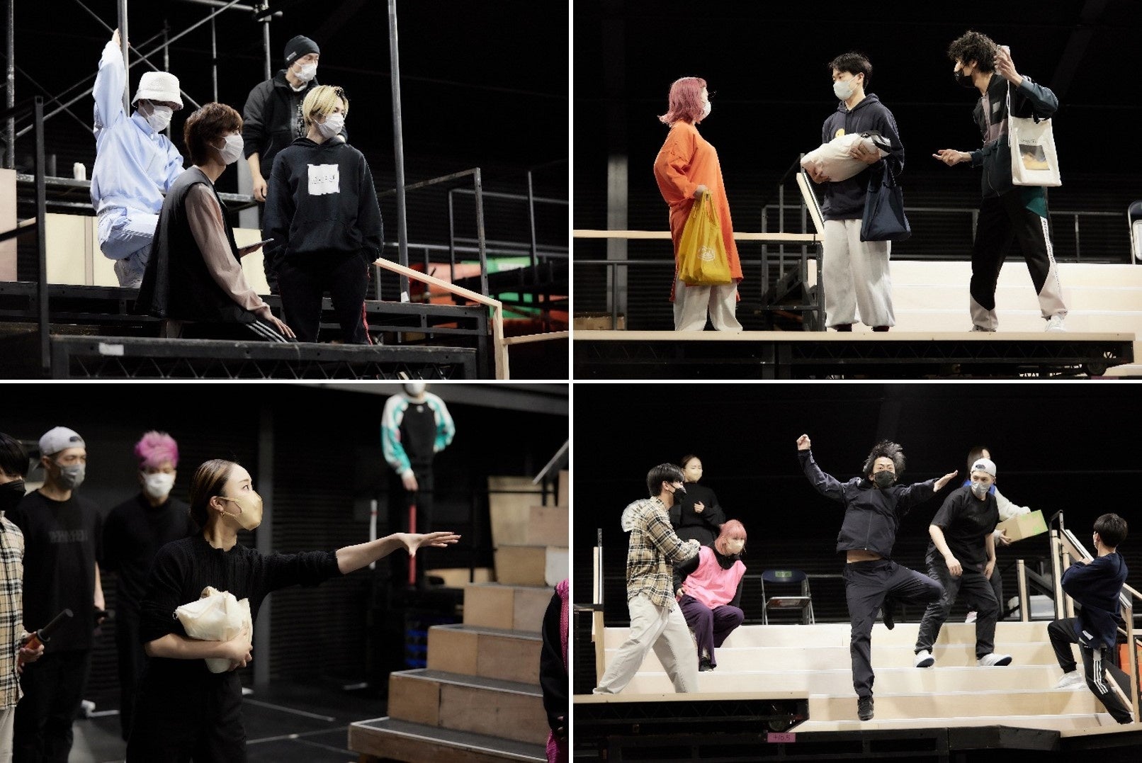 2月中旬の稽古場では、敷地内に組まれた大掛かりな舞台装置と、曲や出演者の動きを場面ごとに確認した後に、初めての通し稽古が行われた。J-POPの楽曲を起点としながら、ストーリーに合わせて展開するダンス・パフォーマンス、場面ごとに位置が変わるスピード感のあるフォーメーション、異なるテイストの内容をつなぎ合わせることで緩急のある流れを作りで魅せる構成&演出は、本番まであと1ヶ月とは思えないほどの仕上がりだ。新旧問わず幅広くセレクトされた楽曲群のバランスの良さ、加えて近年のヒット曲に見られるキャッチーさや中毒性は、梅棒のステージに新たな華を添える。お馴染みの梅棒メンバーのキレのある表情や動きはもちろん、客演のメイン・キャストとして話の中心を担うw-inds.の千葉涼平、メリハリのある演技や生歌で魅了する音くり寿、キーパーソンとして存在感を見せる鳥越裕貴、それぞれの個性、特徴を活かしたダンサー陣の動きも目を惹く。ここから1ヶ月、開幕を迎える〈曇天ガエシ〉がどのようなステージになるのか、期待が高まる。