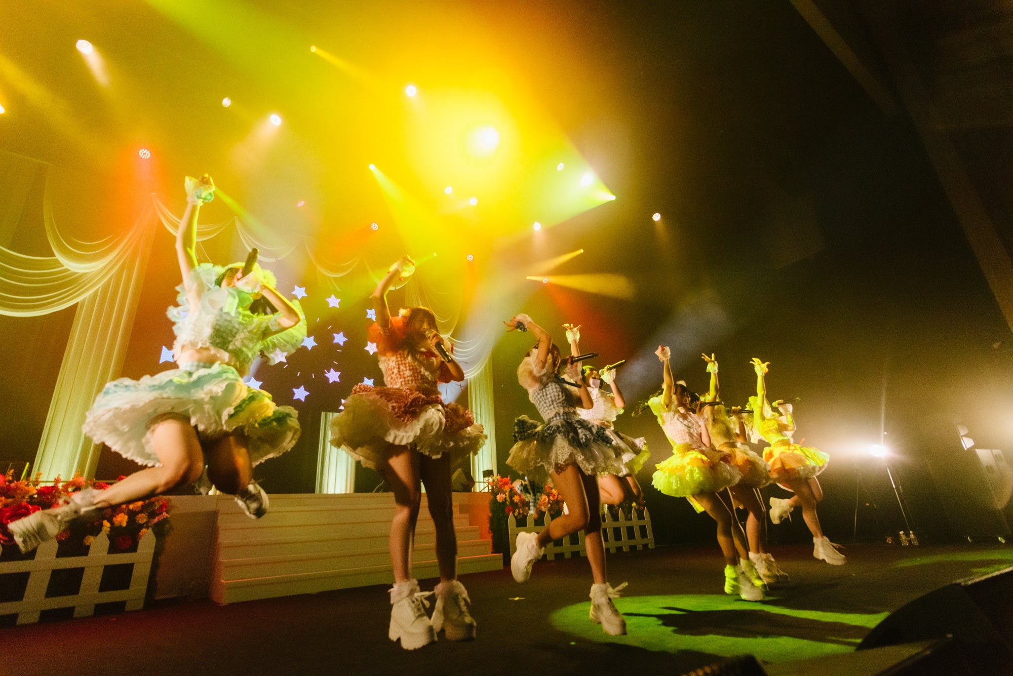 ここで2回目のMCに入る。既存メンバーの4人は1年前からこのステージでライブをすることが伝えられていたようで半信半疑だった様子だが、加入して間もないメンバーはこんなに早く、大きな会場でステージに立てることに正直驚いたと心境を語っていた。