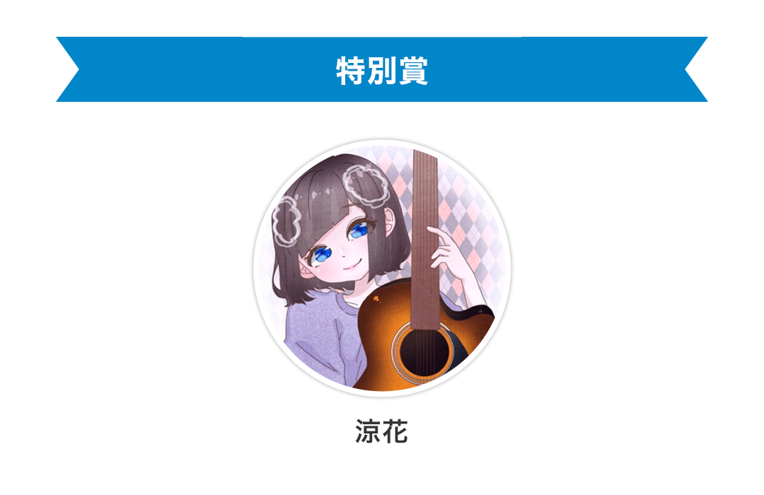また、特別賞に輝いたのは、“感情の起伏に応じて、伝えたいセクションごとにさまざまな歌いわけやテクニックが散りばめられていて、だけどそれが鼻につかないその個性的な歌い方はとても癖になる歌だと思いました。”と称賛された涼花が受賞しました。