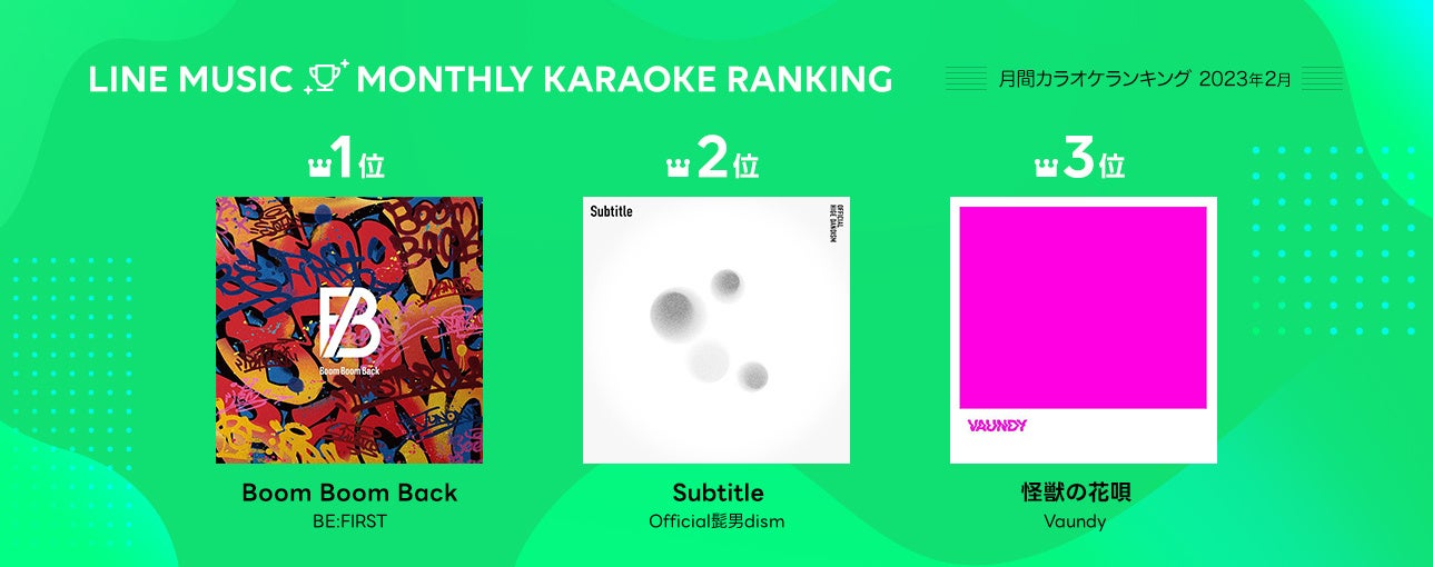 【LINE MUSIC 2月月間ランキング 】総合1位Official髭男dism「Subtitle」、2位BE:FIRST「Boom Boom Back」