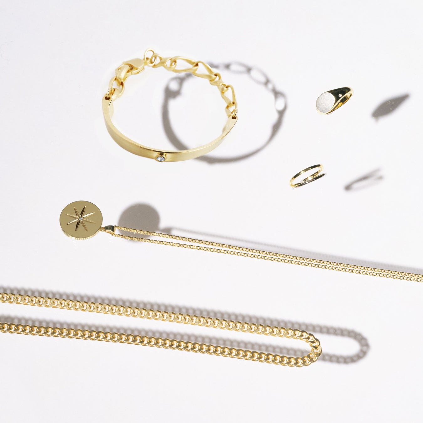 「指輪、バングル、ネックレス……、どれもキラキラした部分とマットな部分が混在しているんです。