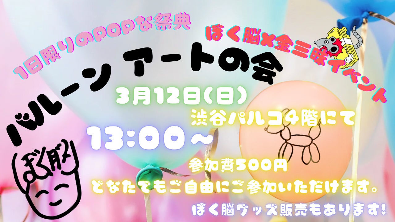 - ぼく脳×金三昧【バルーンアートの会🎈】3月12日(日)開催!!!