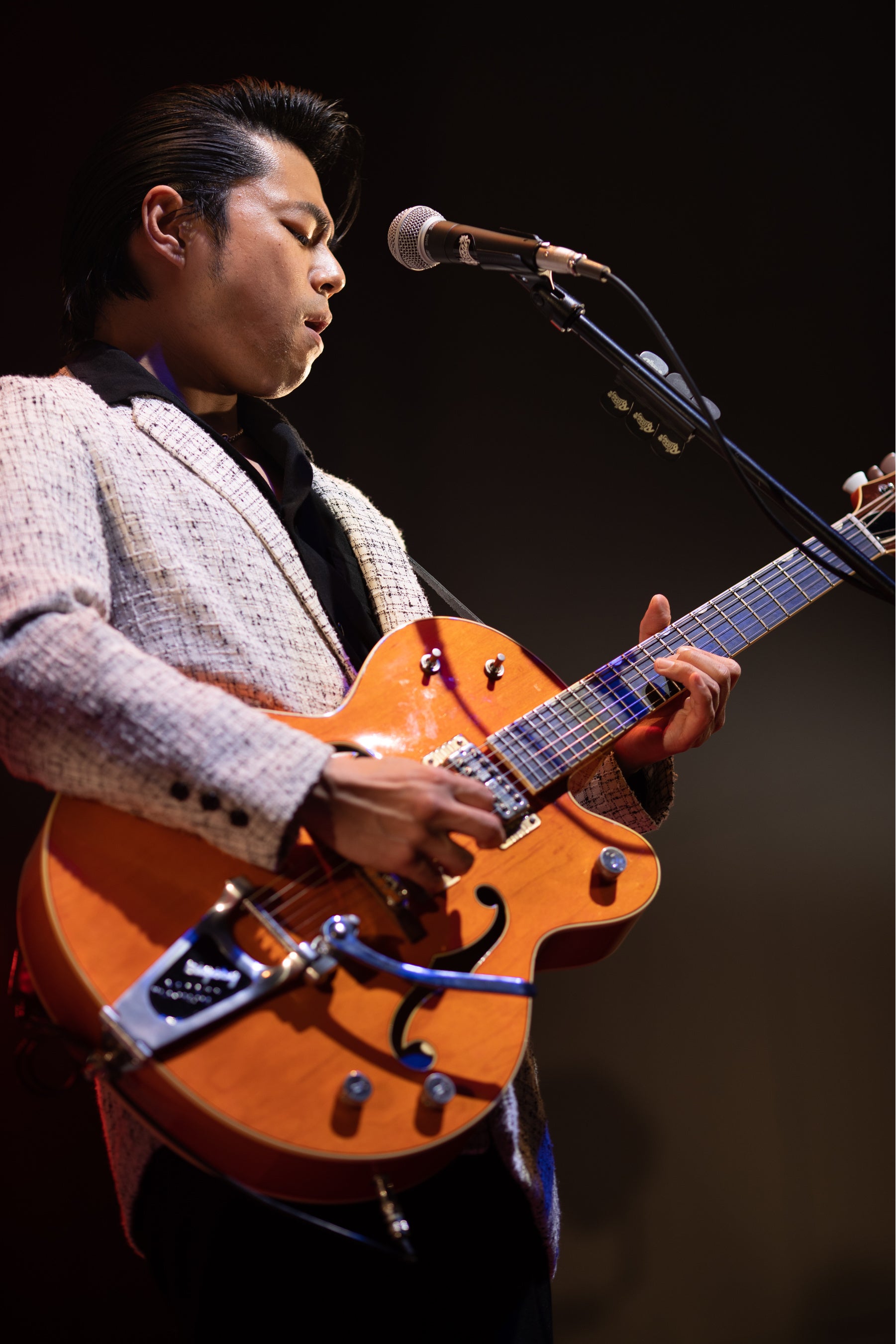 さらには、ファンとコミュニケーションを交わしながら「やっとライブらしさが戻ってきたよね。今日はみんな最後まで楽しんでいきましょう!」と、オールディーズダンスチーム・Good Spiritsの女性ダンサーたちを迎え入れた「Sweet Jukebox」や「Feel So Good」をみんなでゴキゲンに歌い踊り、観客のリクエストで披露する楽曲を決めるカバーコーナーでは「ジュリアに傷心」「タッチ」「ルージュの伝言」の中で最も拍手の数が多かった「ジュリアに傷心」をクールかつ艶やかに熱演。そのままのテンションで「恋はあせらず」「ラストサマーデイ」と多種多様なロカビリーで会場をひとつにしていく様は、実に爽快だ。