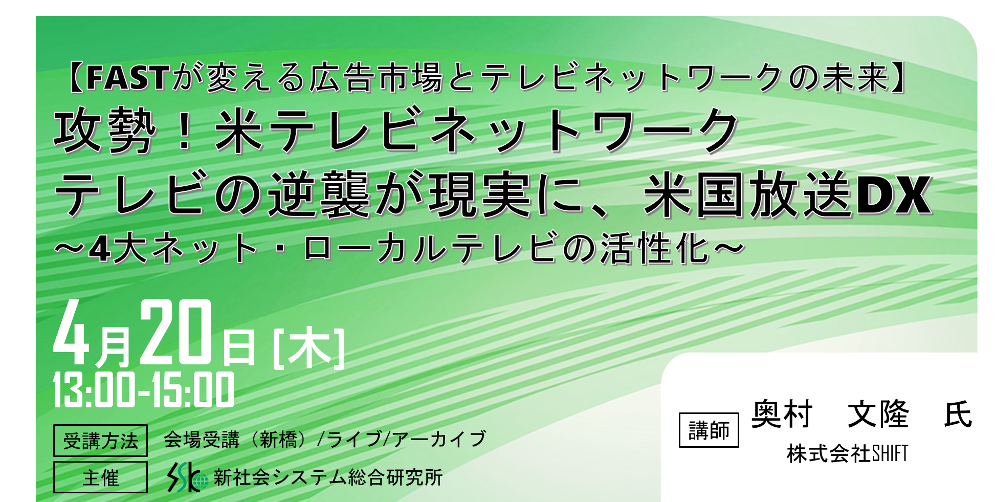 加えて、市場を席巻しているのがFAST(Free Ad-Supported TV)と呼ばれる、無料広告モデルのストリーミングサービスである。テレビ画面と同じ高品質の映像・音響にこだわる広告主は、データアプローチが可能なテレビ局のFAST広告への評価を高めている。放送産業からグーグルのようなネット産業への無料広告モデルでの参入はいわば「米国放送事業者の逆襲」である。