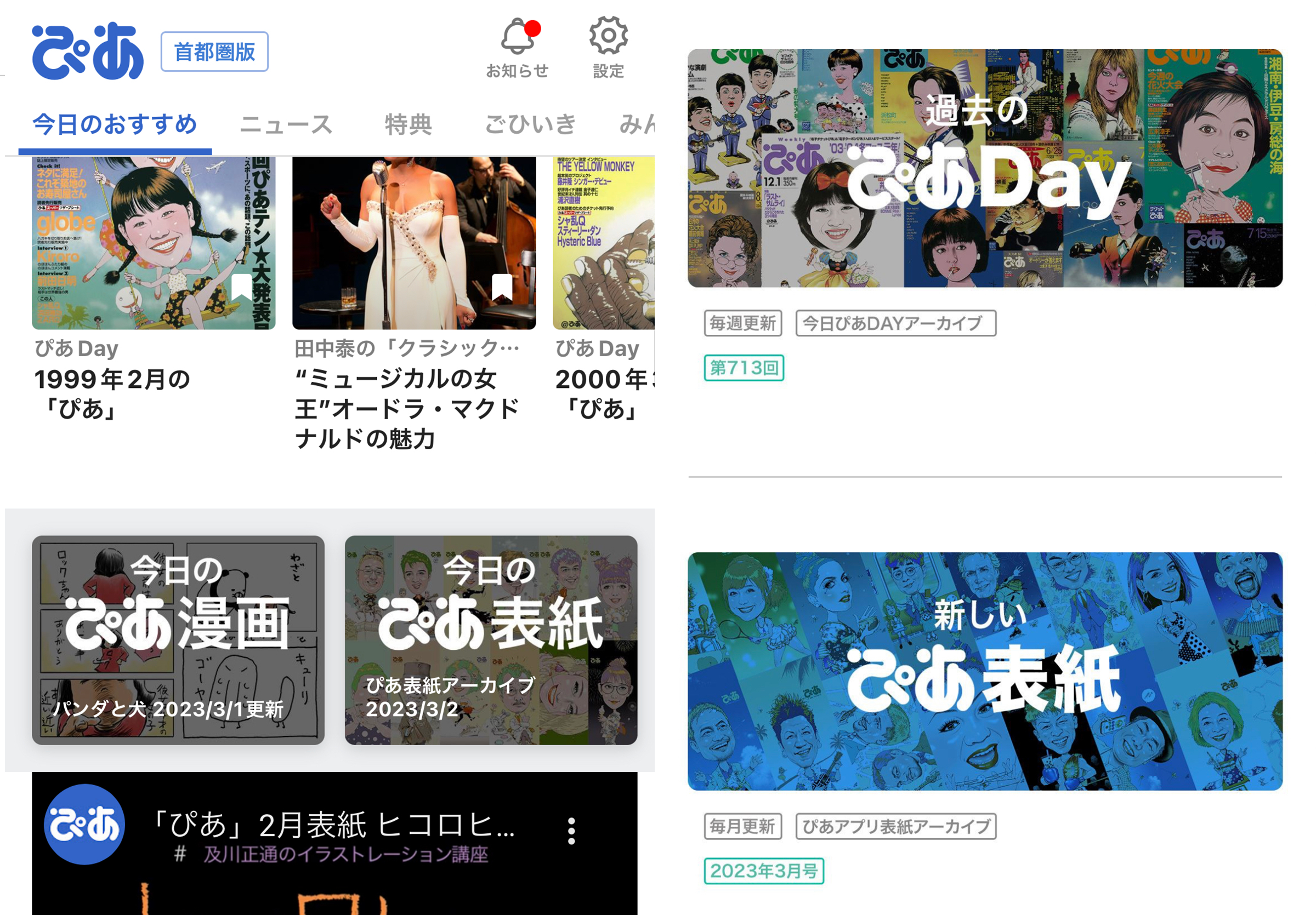 最新の表紙はアプリ起動時に表示されるとともに、アプリ内の「今日のぴあ表紙」コーナーから確認できます。情報誌「ぴあ」の時代から数えて作品数は1,300を超える中で、フワちゃんの登場は初となります。