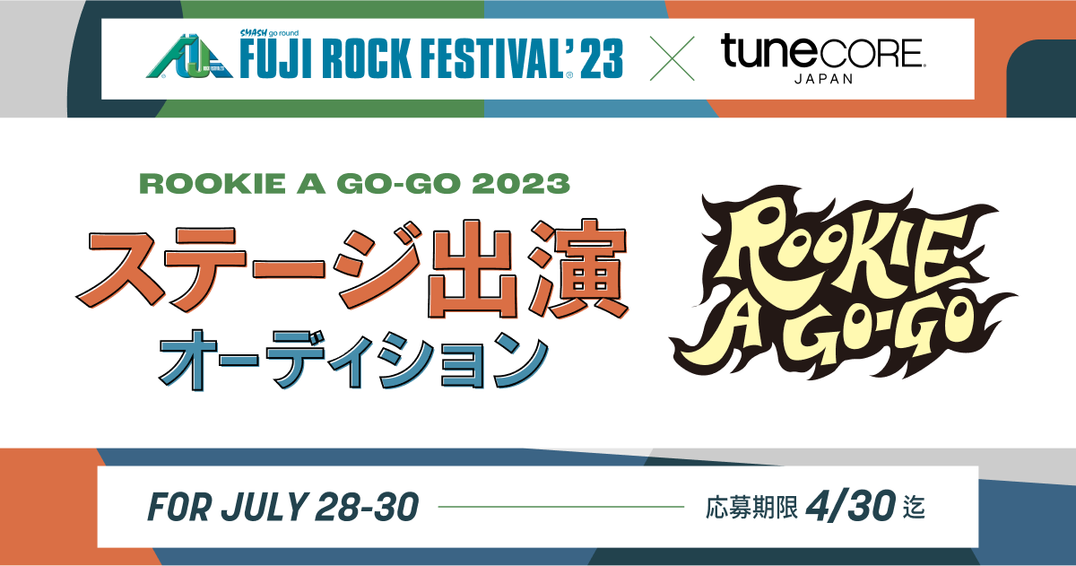 音楽配信ディストリビューションサービスTuneCore Japanを運営するチューンコアジャパン株式会社(本社:東京都渋谷区、代表取締役社長:野田威一郎)は、FUJI ROCK FESTIVAL‘23のオフィシャルパートナーとして、同フェスの「ROOKIE A GO-GO」ステージ出演オーディションをFUJI ROCK FESTIVALと共同で実施することをお知らせいたしま