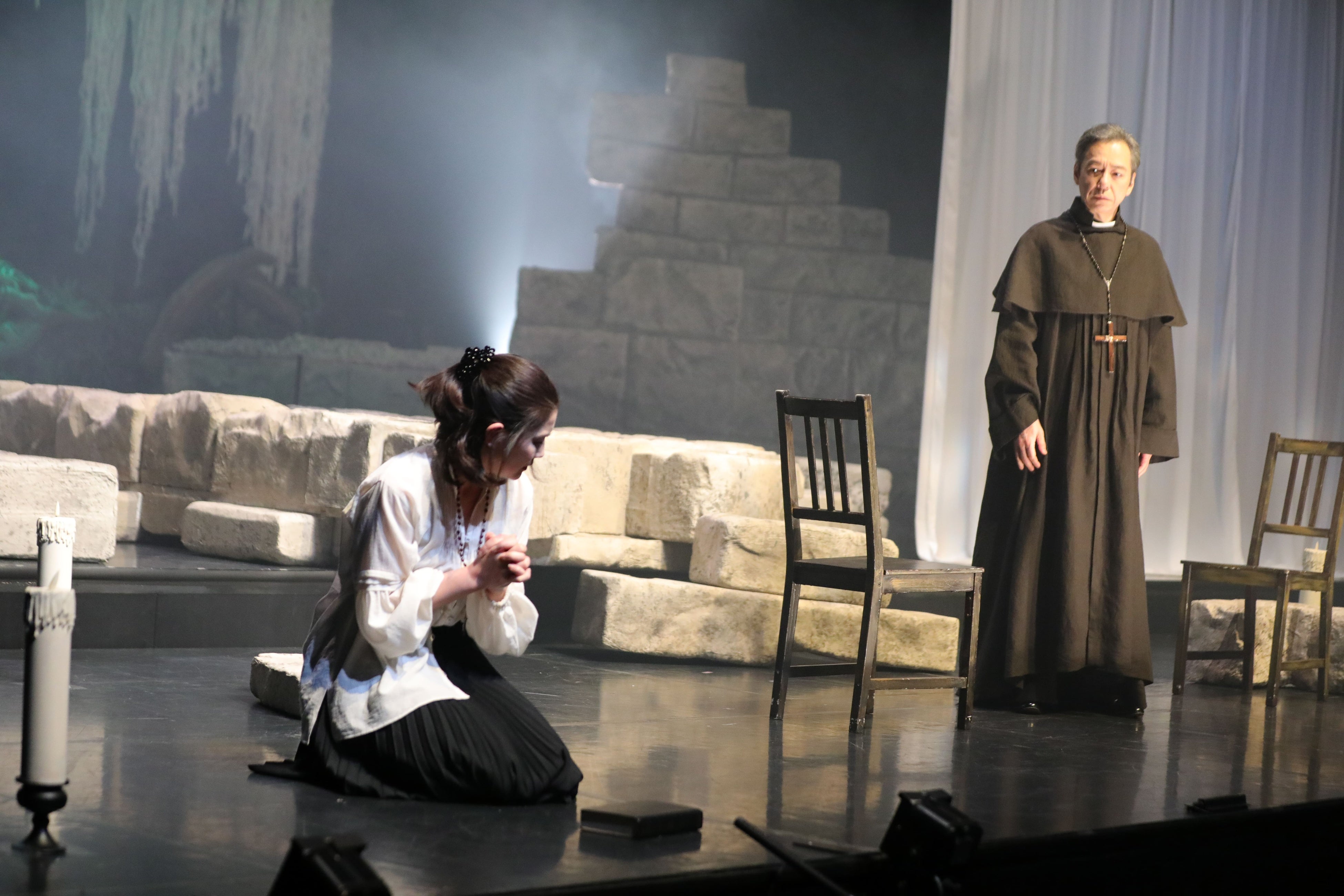 また、石田は、娘が行方不明となった母親の悲劇、そして母親としての苦悩を丁寧に演じて印象付けた。莉子と朝加は、本作が初舞台。莉子はみずみずしい演技で演じきり、朝加は山川神父に救いを求める加賀谷役で存在感を放った。