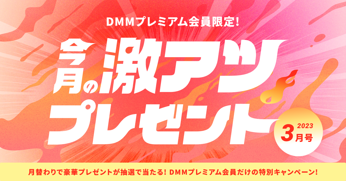 合同会社DMM.com(本社:東京都港区、会長 兼 CEO 亀山敬司、https://dmm-corp.com/ 以下DMM)は、本日より、DMMの各種エンタメサービスを横断的かつお得に楽しめるサブスク会員システム「DMMプレミアム」の会員限定特典として、月替りで豪華プレゼントが抽選で当たる『今月の激アツプレゼント』を開始いたしますので、お知らせいたします。