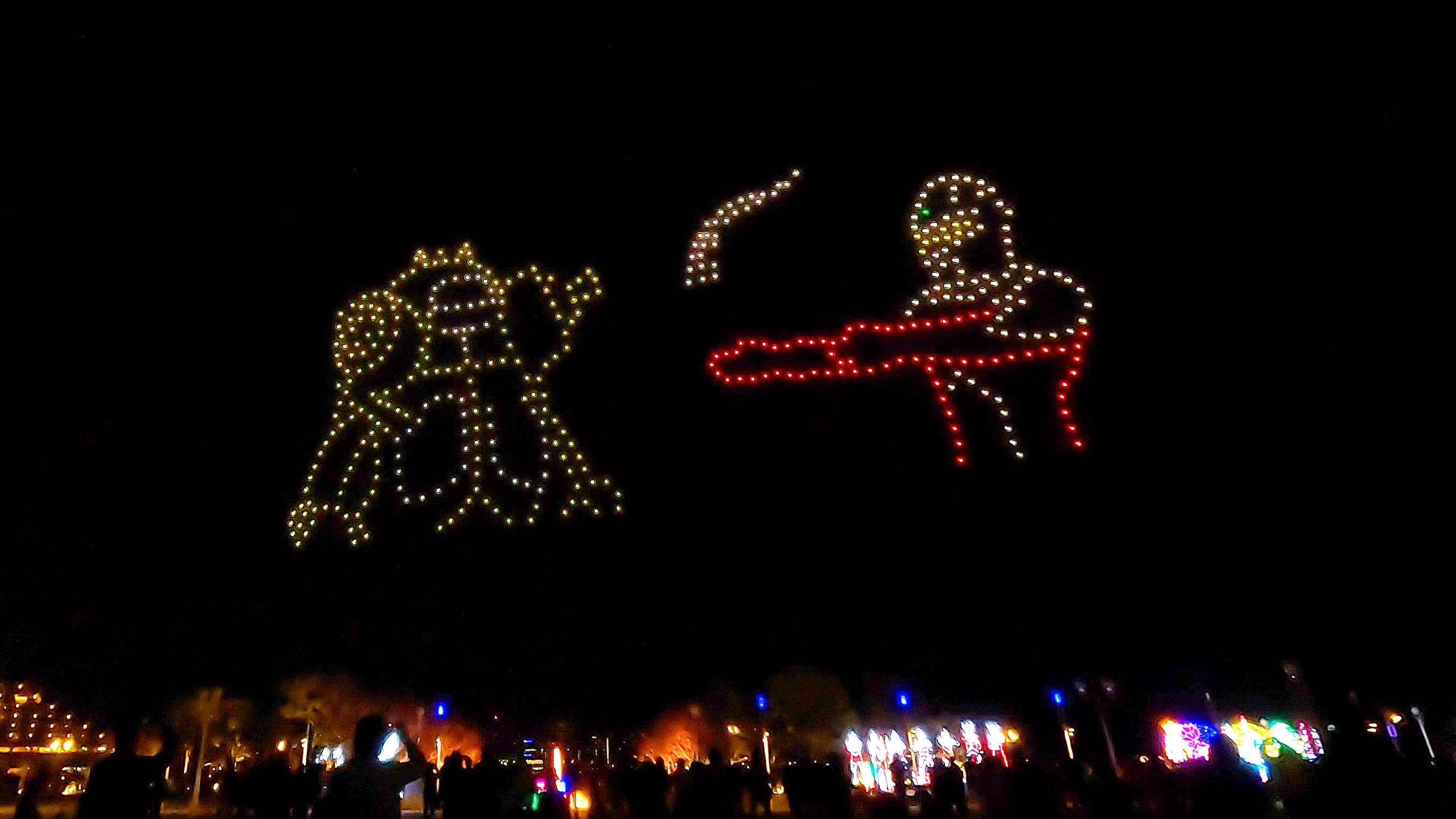 「世界中の人が希望の光と共に楽しく安らかな時を過ごしてほしい」というテーマのもと、音との同期やバトルシーンの再現などドローンの精密さと表現力の高さを最大限に発揮した演出を完成させました。