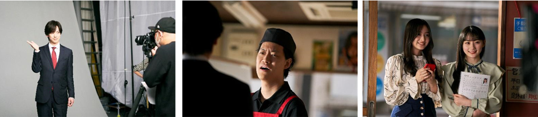 本CMは2月に都内スタジオにて撮影を行いました。TVCM初出演となる井上さんと川﨑さんですが、テレビやYouTubeで見ていたCMに自分達が出演することに対し、「すごく嬉しい」とスタッフへ喜びを伝える初々しい姿も見え、リラックスした様子で撮影に臨んでいました。またダンスシーンの撮影前には、入念に振りを確認し、お互いにチェックし合うなど真剣に取り組む姿が見えました。