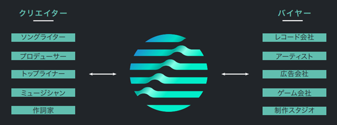 2021年より日本と韓国にて試験的なサービスを開始し、現在では日韓のすべての主要レコード会社と200人以上のA&Rがサービスを利用。さらには世界中の500人を超えるソングライター、プロデューサー、音楽クリエイターが未発表楽曲を登録しています。世界中のソングライター、プロデューサー、音楽クリエイターは、レーベル、広告代理店、映画・テレビ制作会社からのクリエイティブ・ブリーフを閲覧することができ、AI楽曲タグ付けサービスによるカタログ管理、プレイリストの整理、楽曲提供の機会を得ることができます。同時に、A&Rや音楽バイヤーは、AI フィルタリングシステムで楽曲をフィルタリングして見つけ、利用可能な楽曲にホールドや興味を持ち、アーティストやプロジェクトのために楽曲を配置する機能を備えています。