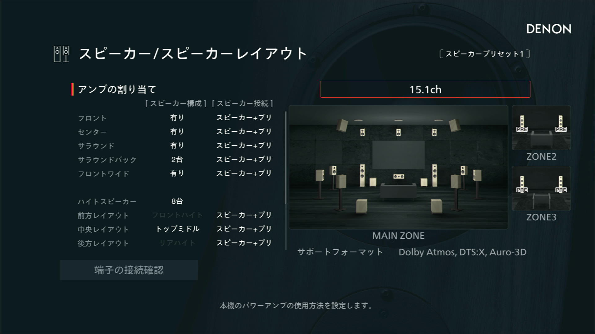 ・「アンプの割り当て」、「スピーカー構成」、「スピーカーの接続」の設定項目を1画面に集約し、複数の画面を行き来することなく設定ができるようになりました。