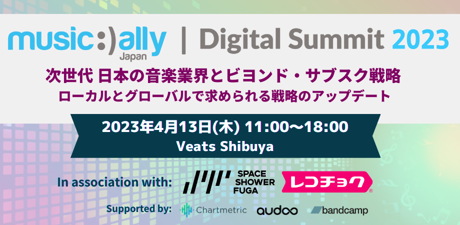 3回目となる今年は、2023年4月13日(木)、Veats Shibuyaにて『Music Ally Japan Digital Summit 2023』(ミュージック・アライ・ジャパン・デジタル・サミット2023)をオフラインで開催いたします。
