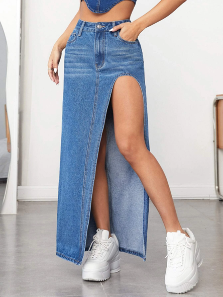 商品名:ハイウェスト ハイスプリット デニムスカート