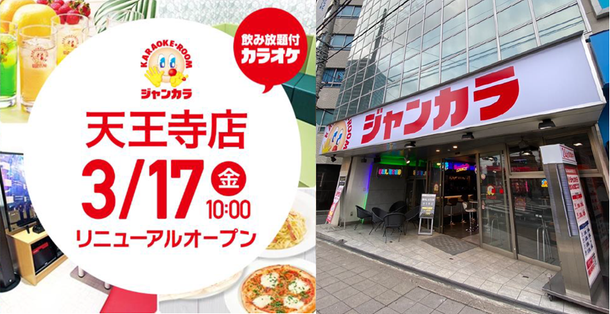 全国で170店舗を展開し、西日本において業界最大規模を誇るジャンカラは、本日大阪の「天王寺店」をリニューアルオープンいたします。