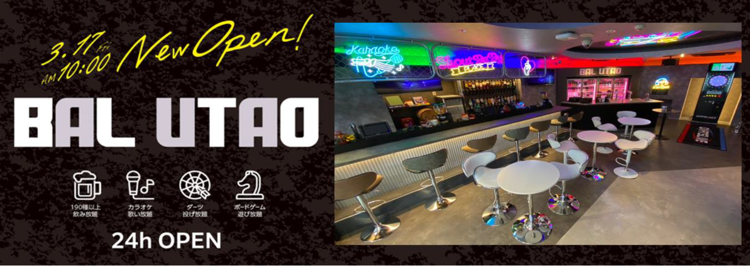 大阪三大繁華街の一つである天王寺にある店舗として、より一層地域に愛され、盛り上げていくことを目指し、店内を大幅刷新するだけでなく気軽に立ち寄れて、飲んで、歌って、騒いで楽しめるBAL UTAOが1階に全国初登場!