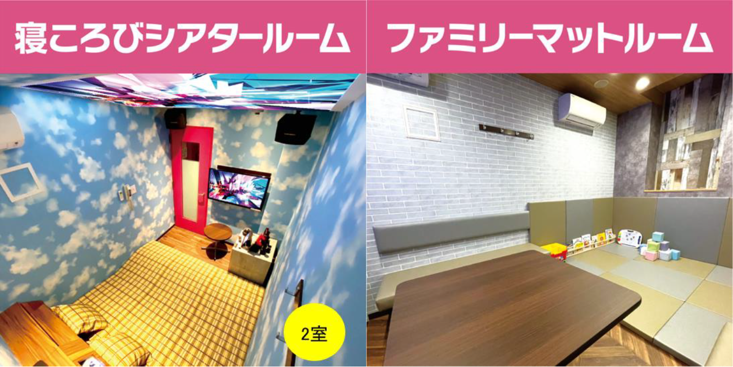 今回新たに「寝ころびシアタールーム」とご家族に大人気の「ファミリーマットルーム」をご用意しました。