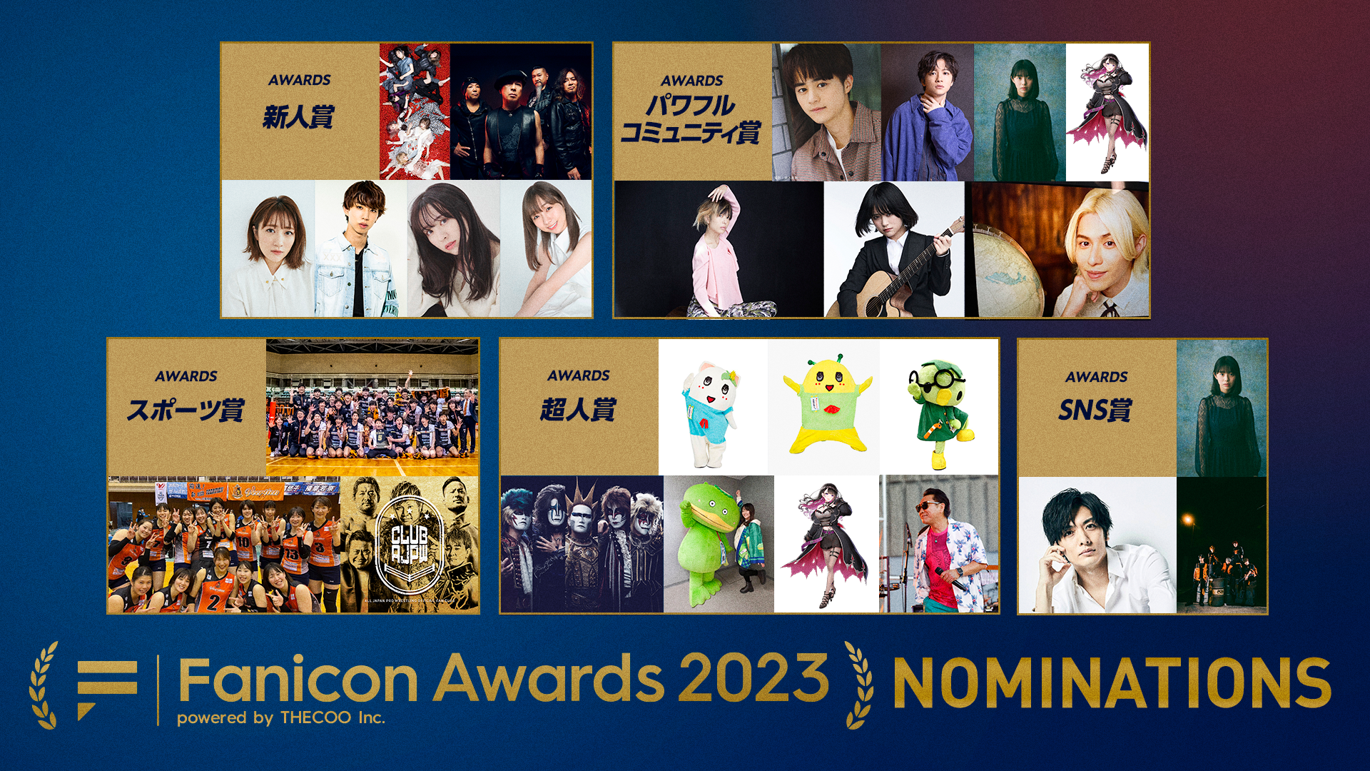 THECOO株式会社(読み:ザクー、本社:東京都渋谷区、代表取締役CEO:平良真人、証券コード:4255、以下「当社」)は、3月23日(木)19時30分より開催する「Fanicon Awards 2023」で表彰する11賞(各賞10賞+MVC賞***)のうち、第一弾で発表した5賞に加え、残り5賞の受賞コミュニティを決定しましたのでお知らせいたします。「Fanicon Awards 2023」では受賞したコミュニティの中から、『最優秀コミュニティ』を各賞1組ずつ選定し、表彰します。最優秀コミュニティを獲得した計10コミュニティ+MVC賞の表彰の様子を3月23日YouTube生配信でお届けします。