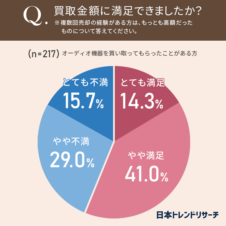 オーディオ機器を売却したことがある方に、買取価格に満足できたかどうか聞いてみました。