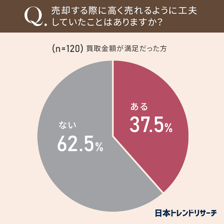 37.5%が、オーディオ機器を売却する際に高く売れるように工夫していたことは「ある」と答えました。