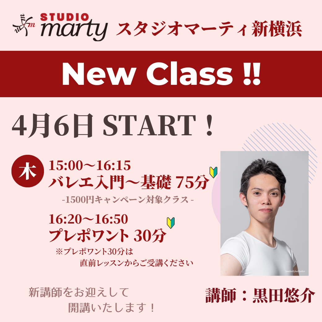 スタジオマーティ新横浜にて4月6日より新しいクラスが始まります!