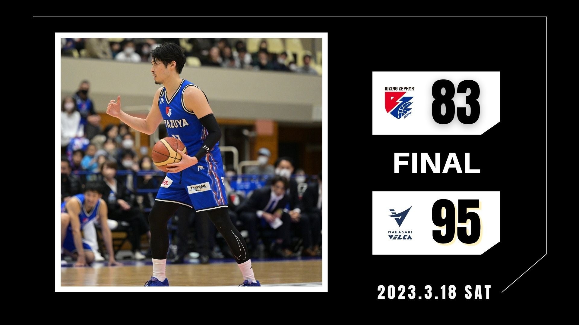 2023年3月18日(土)に開催されましたBリーグ第26節【ライジングゼファーフクオカvs.長崎ヴェルカ】において“福岡48-71長崎”の結果となりましたことお知らせいたします。