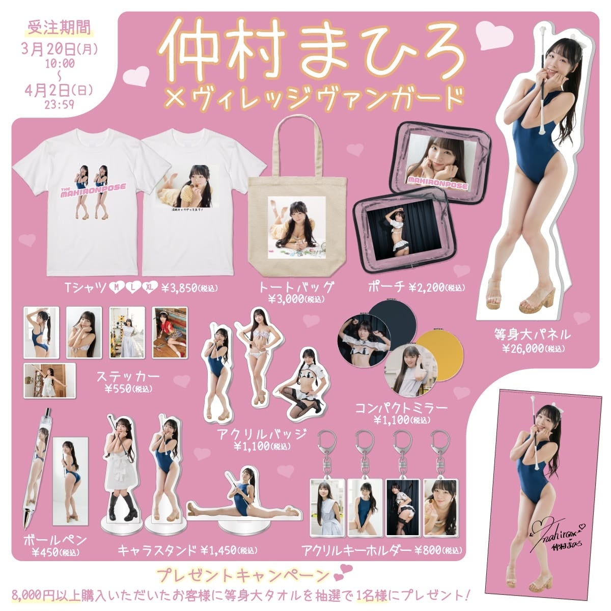 2023年3月20日(月)より、清純派♡グラビアアイドル【仲村まひろ】とヴィレッジヴァンガードの限定コラボグッズが発売決定!!オススメはやっぱり等身大パネル!一緒に暮らしている気分になれること間違いなし!!
