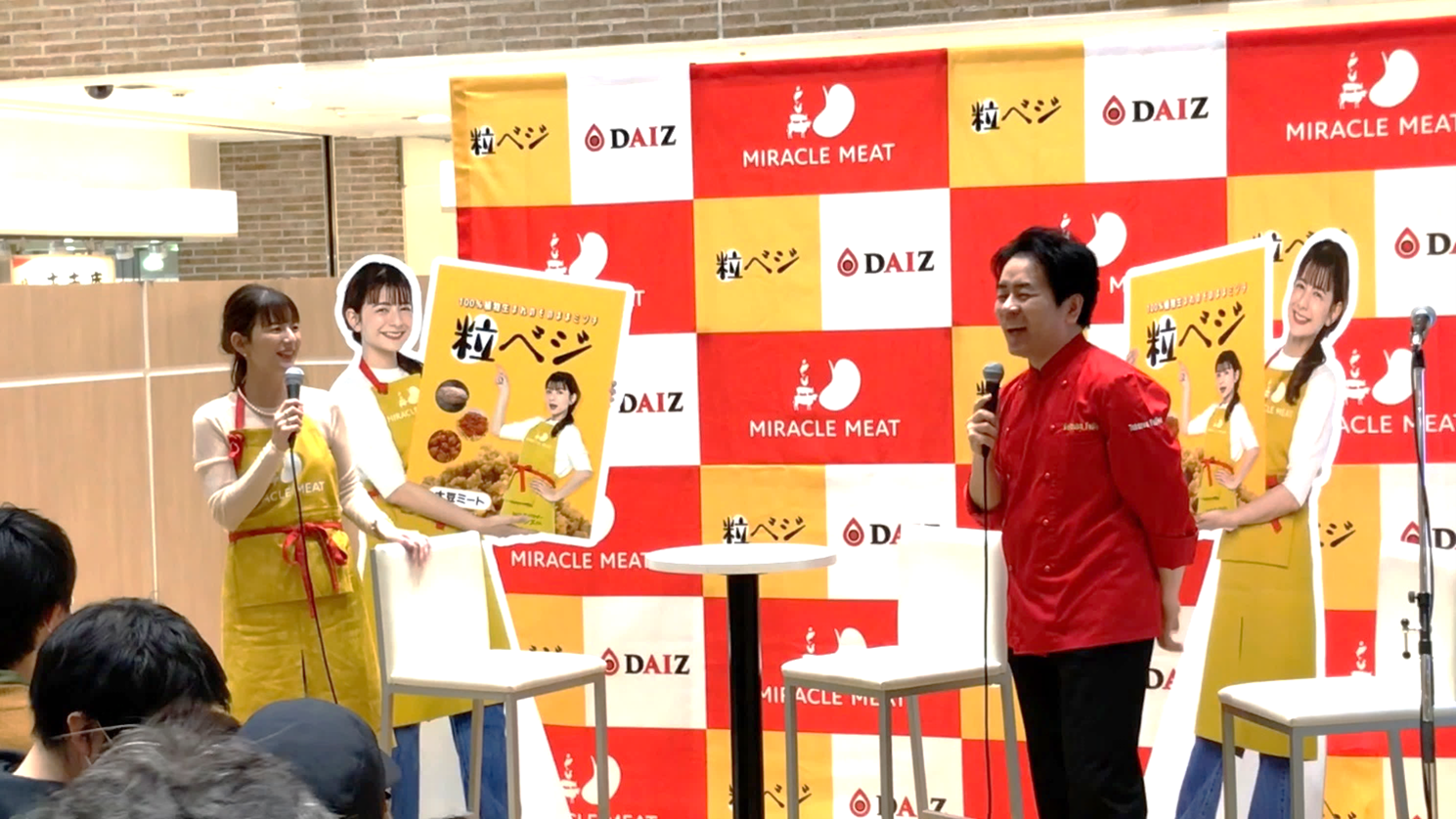 発芽大豆由来の植物肉「ミラクルミート」を開発・製造するスタートアップのDAIZ株式会社(本社:熊本県熊本市、代表取締役社長:井出 剛、以下「DAIZ」)は、2023年3月18日(土)に、食料品専門店・北野エース都内3店舗にて大豆ミート『粒べジ』販売イベントを開催しました。