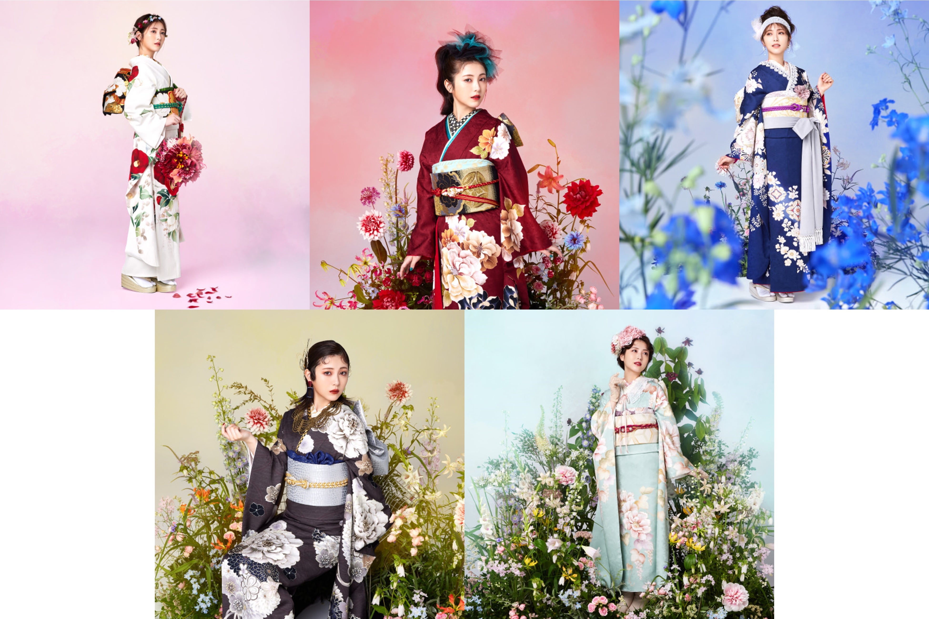 インタビューでは、20歳という年齢を境に、どんな変化があったか、「これまでの私」、「今の私」、そして「これからの私」という3軸にて、パーソナルな部分から仕事への思いなど、お話をお伺いしました。撮り下ろしの最新ビジュアルは、今季の最新オススメ振袖である、トレンドカラーの地色に大胆に椿や牡丹の花を配した2着の振袖を着こなしていただいています。