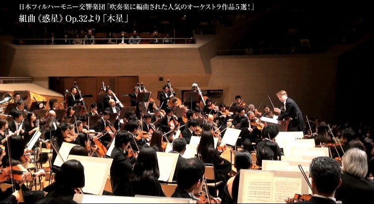 このたび配信を開始する映像には、日本フィルハーモニー交響楽団と名指揮者たちによる演奏を収録。ホルストの『組曲《惑星》より「木星」』や、ラヴェルの『《ダフニスとクロエ》第2組曲』など、吹奏楽の経験者はもちろん、誰もが一度は耳にしたことがある名曲・全5曲を、約1時間に渡る映像でたっぷりとお届けします。