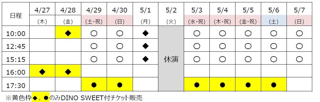 ※DINO SWEETS付チケットの販売は一部の公演のみとなります。詳しくは各チケツト販売ページをご確認下さい。