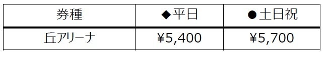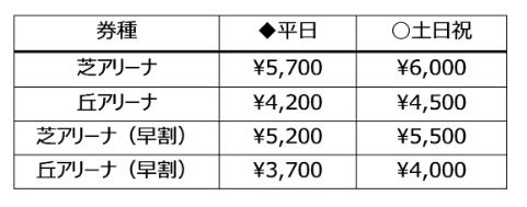 ※芝アリーナは芝生の上に座ってご覧いただくお席です。丘アリーナは、椅子やひな壇にお座り頂くお席です。