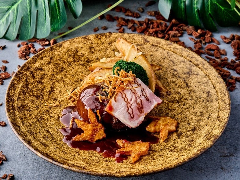 本公演期間中、渋谷ストリームエクセルホテル東急Bar&Dining「TORRENT」では、トレントで一番人気のハーフブッフェ+メインのランチプランにDINO SAFARI 2023の開催期間限定メニューとして「ディノ バーグ」が登場!豪快に頬張りたくなるボリューム満点のハンバーグです!恐竜の足跡などを散りばめ、見ても楽しい1品に仕上げました。ゴールデンウィークにお子さまと是非DINO SAFARI と合わせてお楽しみください。