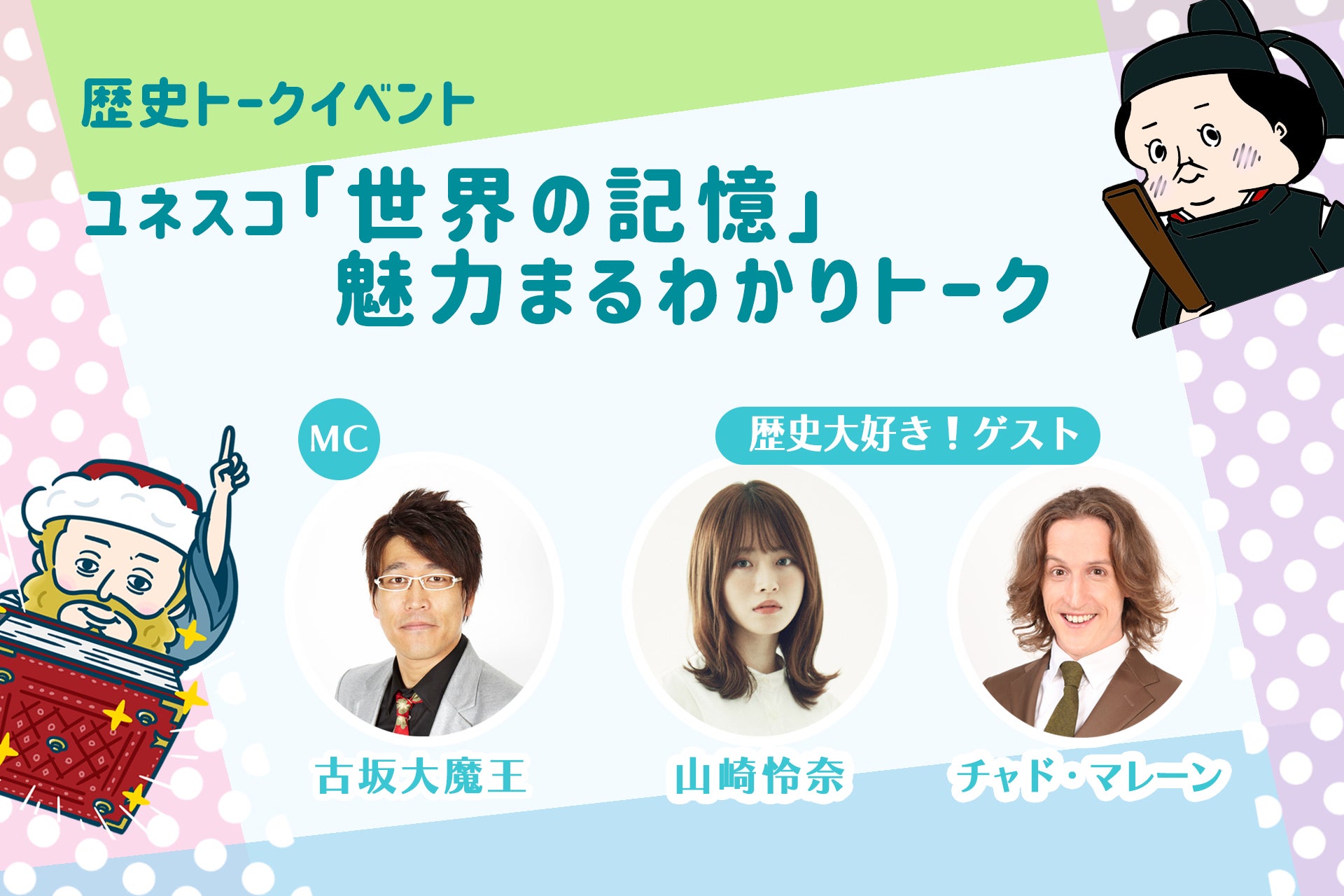 MCには古坂大魔王さん、ゲストには「歴史好き」としても注目され歴史本も出版している元乃木坂46山崎怜奈さんと、世界遺産検定3級を有するなど、日本だけでなく世界の歴史にも詳しい、お笑い芸人のチャド・マレーンさんを迎え、「世界の記憶」の魅力を分かりやすく噛み砕きながらお伝えします。