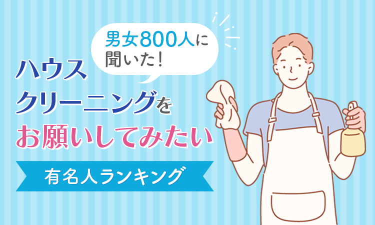 今回はハウスクリーニングの『ハウスコンシェルジュ』を運営する株式会社リスダンケミカルと共同で、全国の男女800名を対象に、「ハウスクリーニングをお願いしてみたい有名人」についてのアンケートをおこないました。
