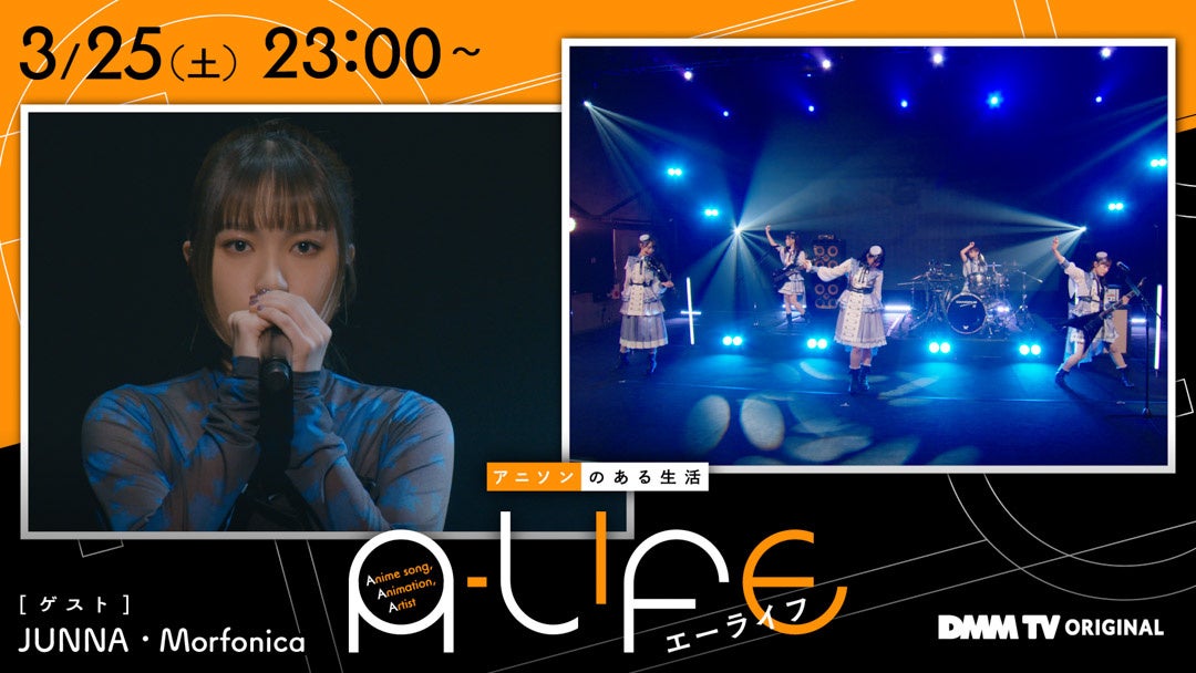 MCの冨田明宏、菅原りこが、思い出の曲と最新曲からゲストの声優・アニソンアーティストとしての人生を紐解くトーク&ライブ番組「A-LIFE」。このたび、3/25(土)23時より配信開始する第2回のゲスト、JUNNAとMorfonicaの歌唱カットを解禁いたしました。