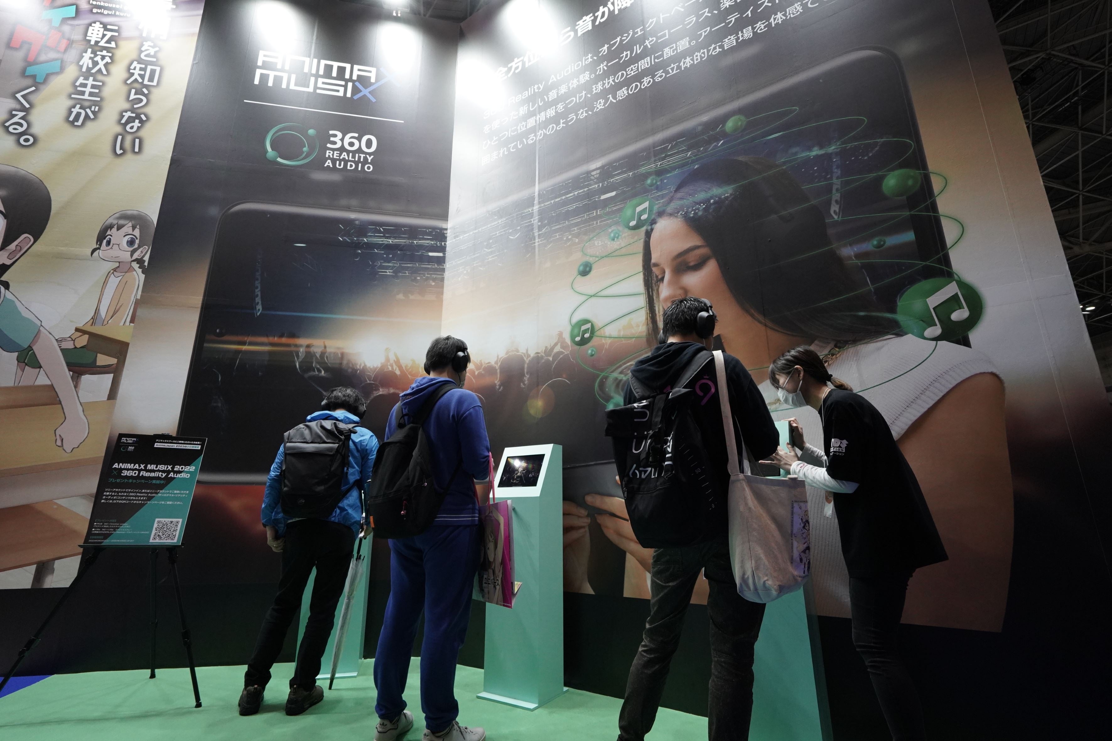 「ANIMAX MUSIX」のコーナーでは、ソニーの360立体音響技術による「360 Reality Audio」でライブ音源を体験することが可能。会場に設置されたヘッドホンを付けると、そこはもう2022年11月19日に横浜アリーナで開催された「ANIMAX MUSIX 2022」の観客席。TRUEの「Another colony」やi☆Risのスペシャルメドレー(幻想曲WONDERLAND~Realize!~アルティメット☆MAGIC)のパフォーマンスを、ライブ会場さながらの臨場感と没入感に浸りながら楽しむことができます。