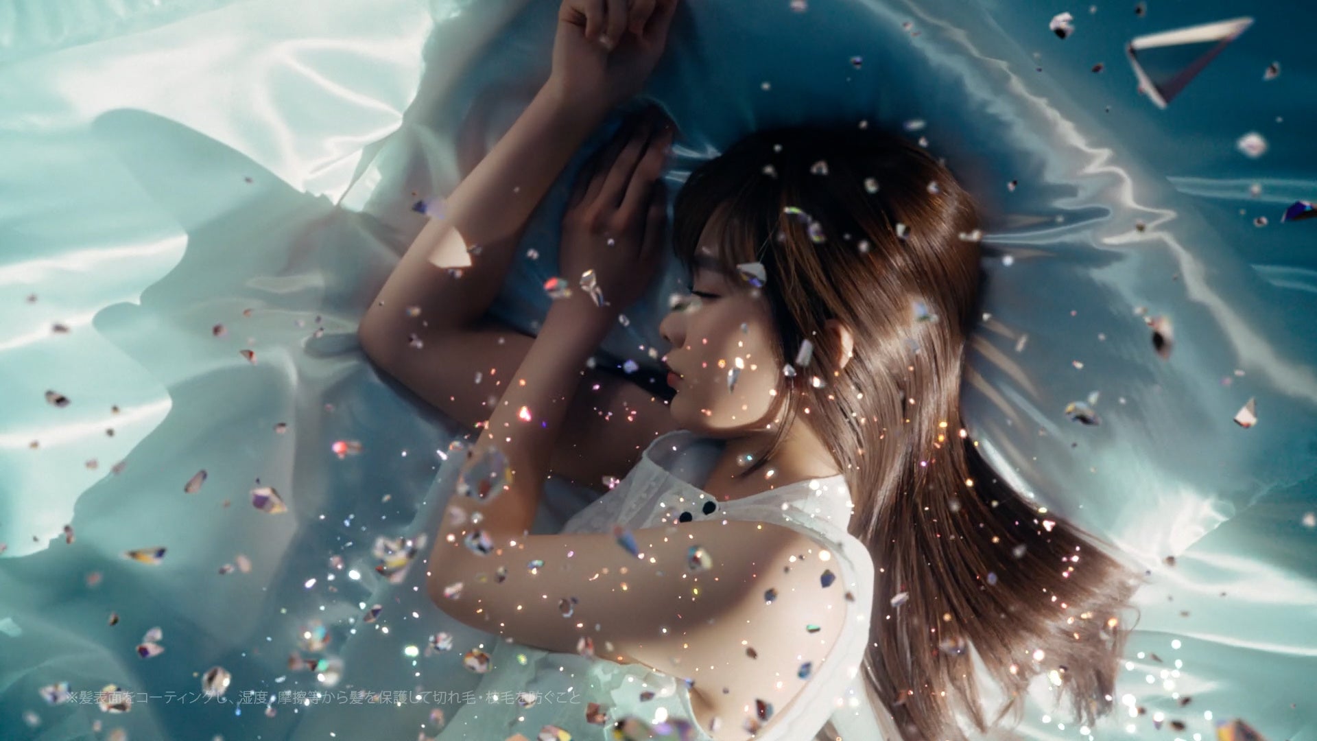 また、CMには新ミューズに就任した女優の見上愛さんが登場。印象的な「LA・LA・LA LOVE SONG」のサビとともに、太陽の光が差す幻想的な世界で眠っている見上さんのカットから始まり、見上さんを中心に、画面の世界は360度ゆっくりと回転をはじめます。回っていく世界の中で、夕方から夜へと時間が流れていき、泡や水滴、プリズムの三日月やヴェールが次々と現れ、最後には再び朝日が差し込むとともに、見上さんがバリアで守られた髪を感じながら前向きな表情で目を覚まします。見上さんの寝顔やニュアンスのある表情、美しい髪は必見です。
