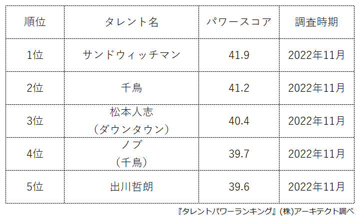 本ランキングは、2022年11月度に実施したタレント調査データ(一部過去実施データ)を利用し、タイトルに応じてランキング形式でまとめたものです。