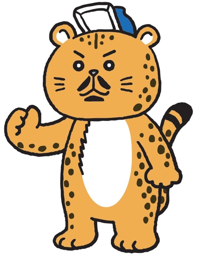 チーターの男の子。いつもお気に入りの包装容器の帽子をかぶっている。高速が好きすぎるあまり、小さい頃は他のチーターと同じだった顔の模様が高速ロゴマークのように変化した。