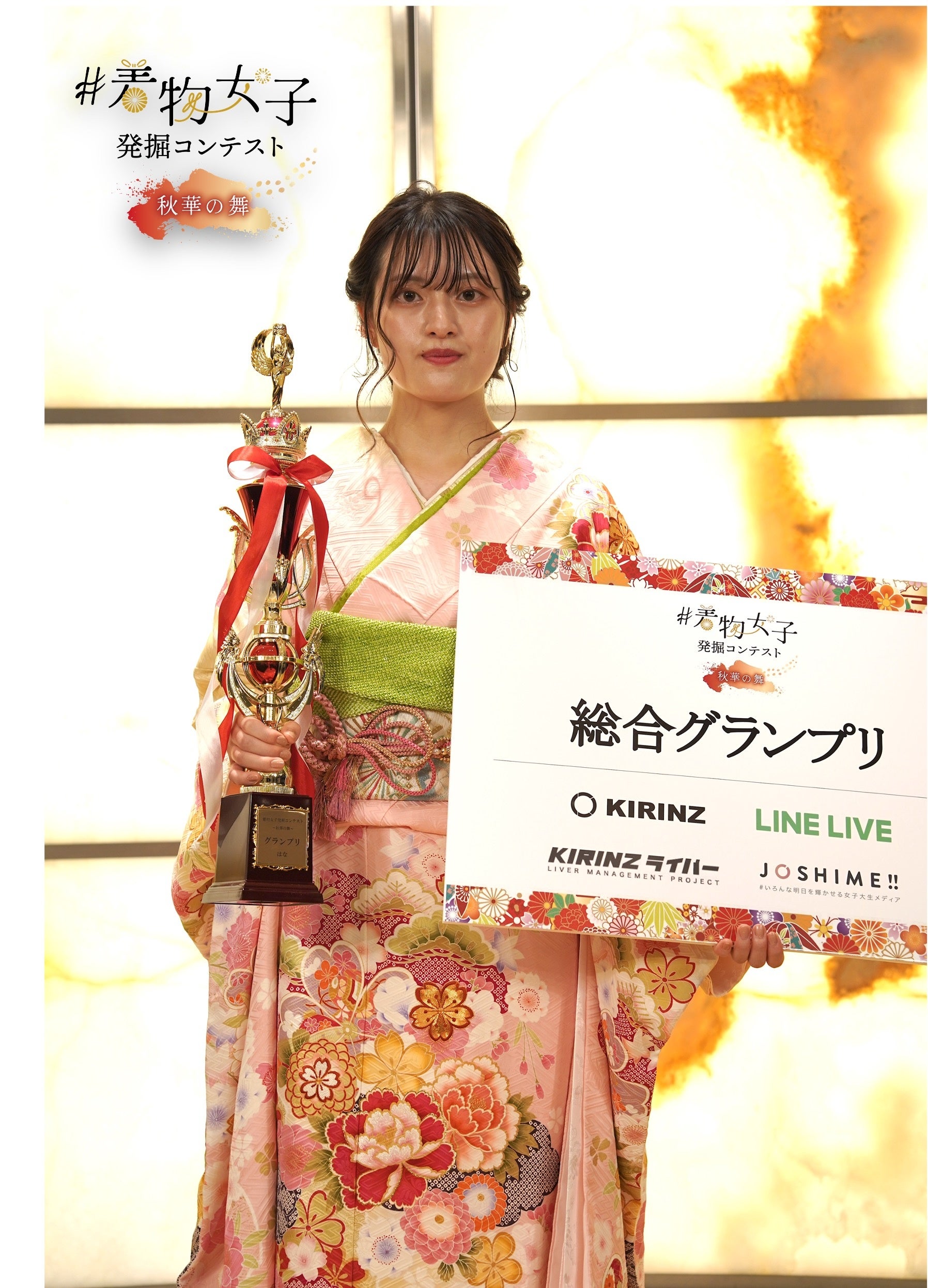 全国で開催する新時代のロールモデルを発掘するライブ配信コンテスト『MODECON』の運営、その他Z世代をターゲットとしたデジタル事業を手がける株式会社KIRINZ(本社:東京都渋谷区、代表取締役:鵜池航太)が開催した、オンラインコンテスト『着物女子発掘コンテスト〜秋華の舞〜』のグランプリに福岡県出身の“はな”さんが選ばれました。