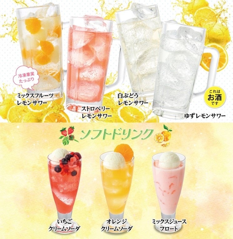 ミックスフルーツレモンサワー、白ぶどうレモンサワー、ストロベリーレモンサワー、ゆずレモンサワー