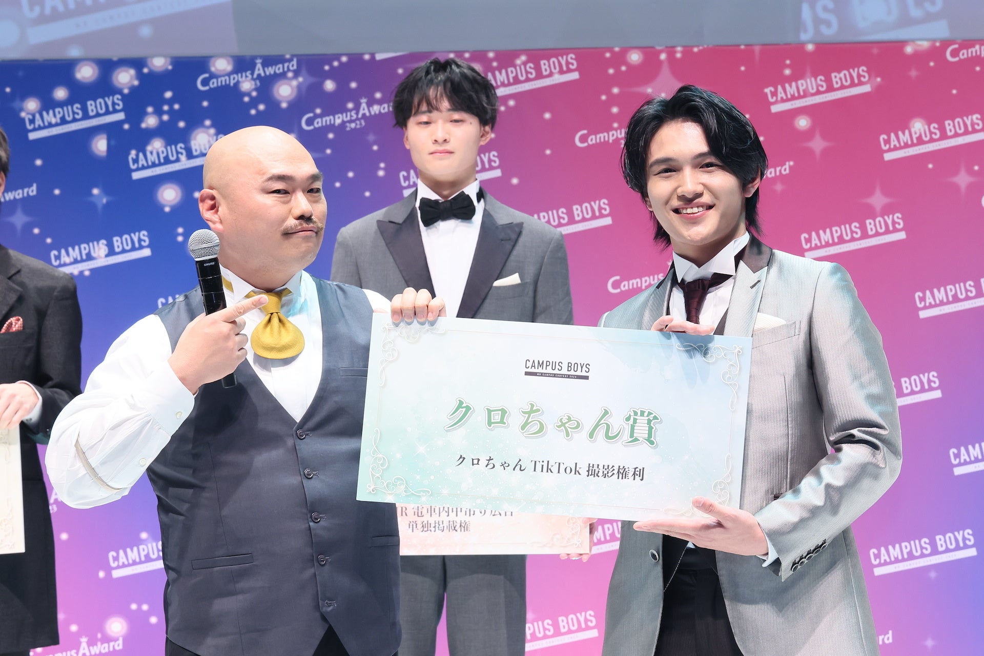 「CAMPUS BOYS 2023」のグランドフィナーレでは、MCの岡副麻希さんに加え、ゲストプレゼンターとして昨年に引き続き3回目の抜擢となるクロちゃん(安田大サーカス)が登場しました。
