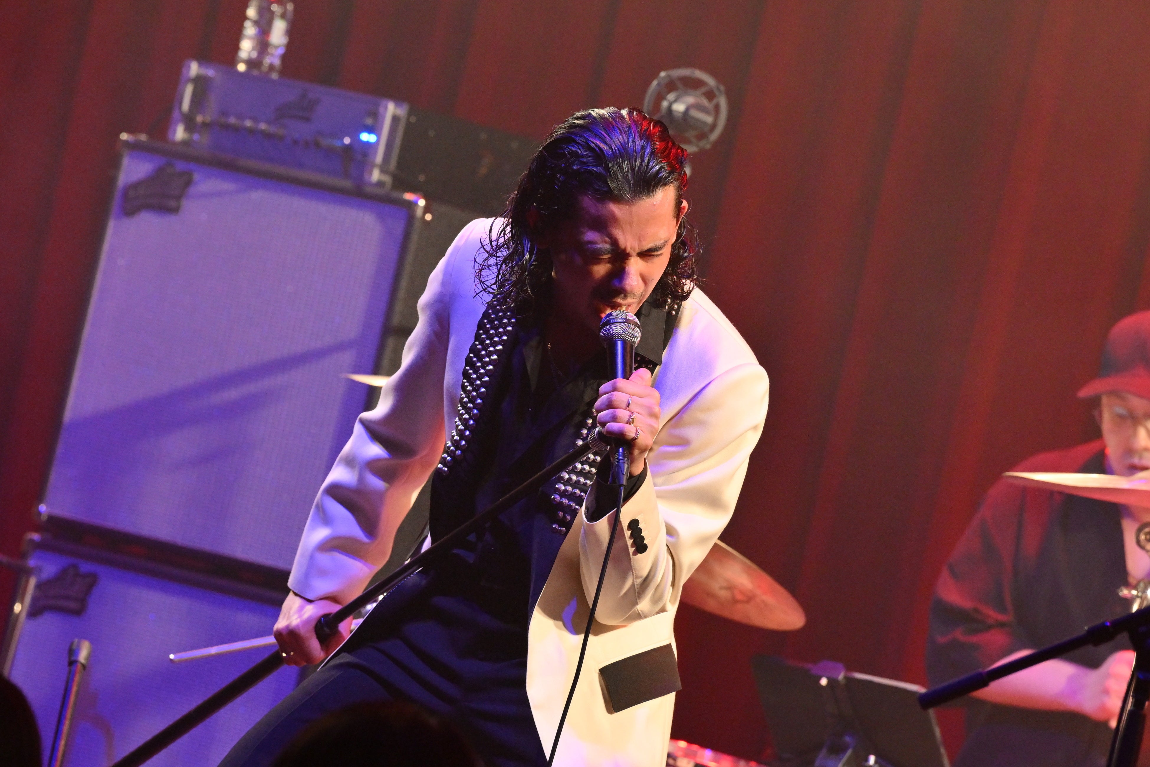 この日、会場では200人の招待客が授賞式を見守った。そんななか、さらに授賞式を盛り上げるべくALIが登場しスペシャルパフォーマンスを披露した。紹介されるや否や、ホーンセクションを率いて華やかに「仁義なき戦いのテーマ」「Dance You, Matilda」で幕を開けると、「ALI!」の掛け声で観客を引き込み、艶やかな「MELLOW CRUISE」「STAYING IN THE GROOVE」へ繋ぐ。さらには観客のハンドクラップを誘った「LONELY LONELY」、テレビアニメ『呪術廻戦』EDテーマ「LOST IN PARADISE」と、軽快で豊潤なアンサンブルを聴かせた。演奏後にはLEO(Vo)が「ライブが唯一みんなと繋がれる場所なので、大切に思っています」とライブへの想いを口に。さらに、昨今日本を興奮の渦に巻き込んだWBCでの活躍が記憶に新しい大谷翔平選手が「LOST IN PARADISE」を試合の登場曲として使用していたことが話題に上がると、LEOは「一緒の時代に生まれたことに感謝。コロナ禍でライブができない時期に、メジャーリーグの球場では(「LOST IN PARADISE」が)かかり続けたんです。だから僕たちとしては一生、孫の代まで大谷選手を応援しようという気持ちで。背中を観させていただいて、僕たちも音楽をひたすら楽しんでいけたらなと思いました」と愛おしそうに話した。