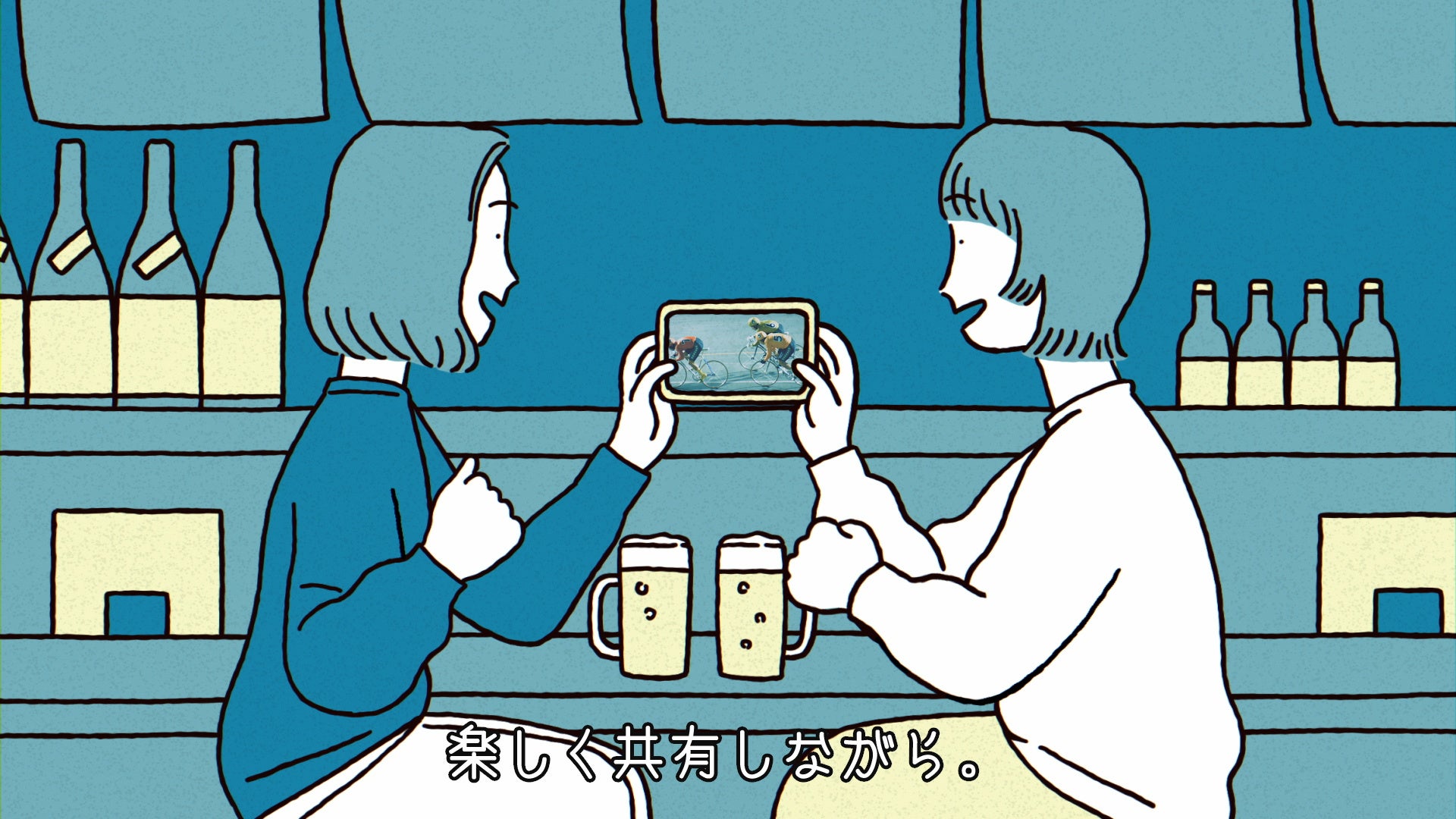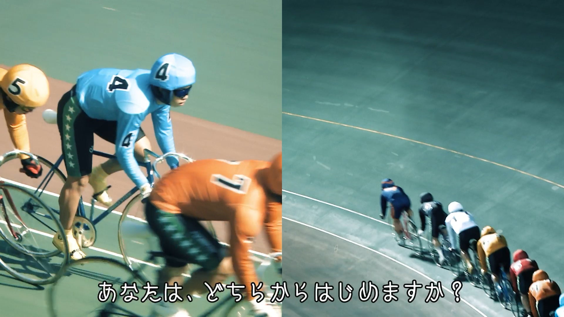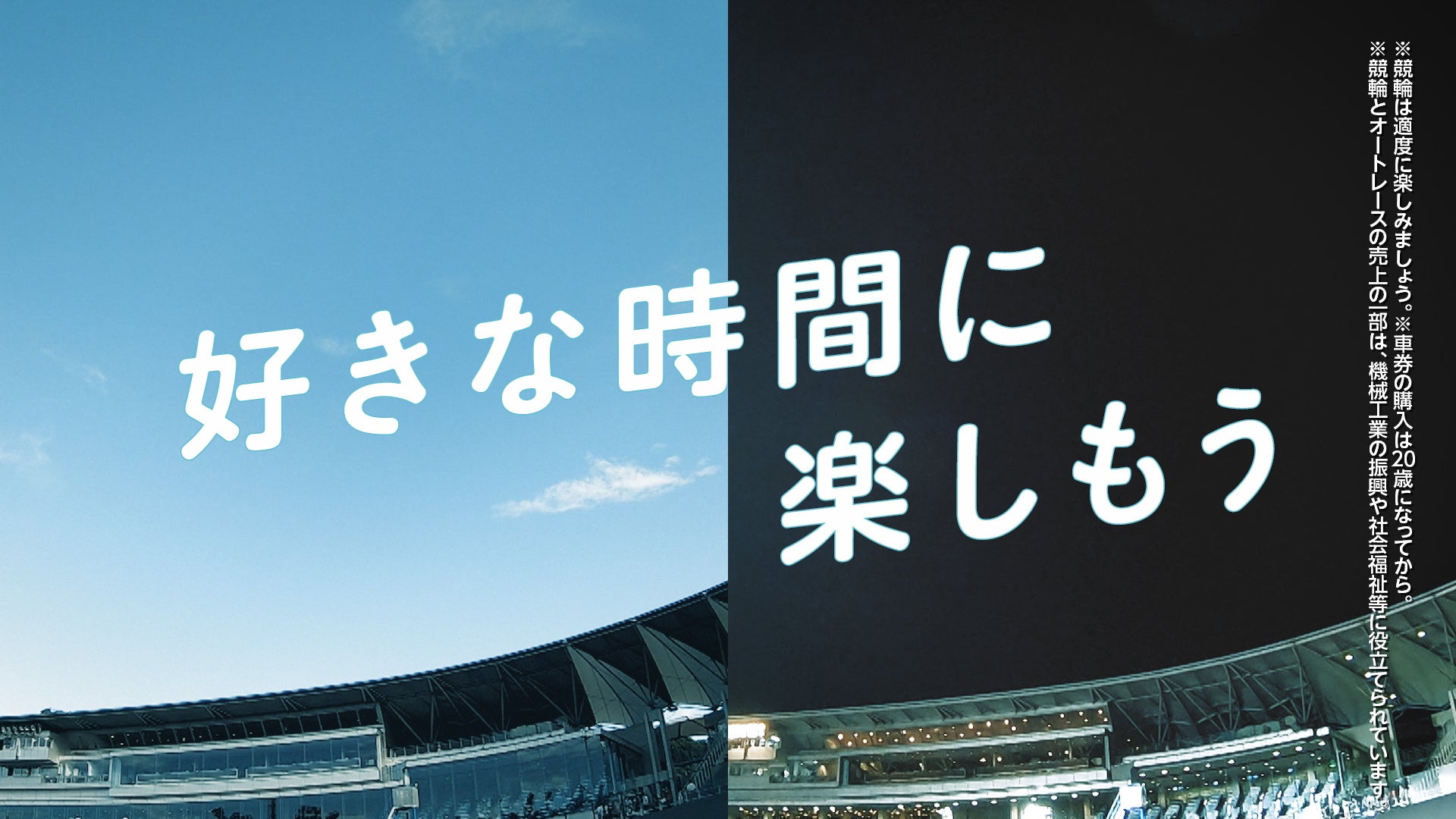 通勤電車が走る時間から終電が近づく頃までレースが行われている競輪。「朝昼夜、選手それぞれの走りが1日をリレーするように、それぞれの時間帯でがんばる社会の人々がいる。」そんな競輪と社会の一日が共に並走している様子を表現したCMです。