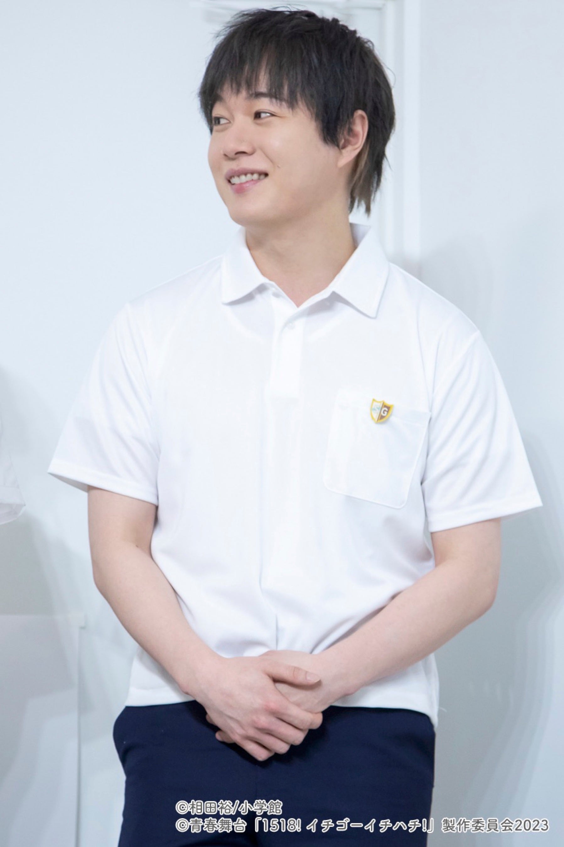 佐野瑞樹は笑いながら「僕は記憶が遠すぎて(笑)、30ン年前…記憶がない、ギリギリに登校して真っ先に帰る、というのをモットーに生活していました(笑)。この作品、原作を読ませていただきましたが、こういう高校時代を送ればよかったな、という思いはすごくあります。楽しい高校生活が送れなかった、ここにきて高校生の楽しい学園生活を擬似体験させていただけたら、いいなと。このメンバーだったら楽しい稽古ができると思っています。高校生の思い出は残っていません(笑)」とここで一気に場が和んだ。内海大輔も「僕もギリギリに登校して真っ先に帰っていた」と帰宅部二人目。周囲から笑いが起こった。「生徒会、擬似体験できたらなと。中学校の時はサッカーやっていて」と言い、なんとセレッソ大阪のジュニアユース!ここで周囲から「おおおお〜」と感嘆の声。「どこの誰だか知らないお母さんとかも声かけてくれた」と語る。「中学3年生の時に思いっきり足首を怪我しまして、しばらくプツッと。遅れとったっていうこともあって高校は近くの学校に行って、でも先輩とかは知っていて勧誘されるんですが、一切やらなかった、挫折した感じです。ここが作品とリンクするところ…(「めちゃリンクしてるじゃん」と周囲から)そこで熱くなるものもなく、芸能界に。学校には最低限行って」とコメントし、思わぬエピソードが披露された。