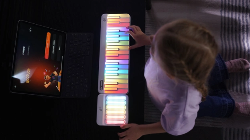 超軽量&コンパクトな、どこでも音楽が楽しめる持ち運べるスマートピアノです。多彩なメニューの専用アプリと連動すれば、初心者からでもゲーム感覚で楽しくスキルアップが出来ます。MIDIキーボードとして使用すれば、プロの音楽家も納得の充実した連携アプリで音楽制作や配信も可能です。音楽の楽しみ方が無限に広がるポータブル楽器です。