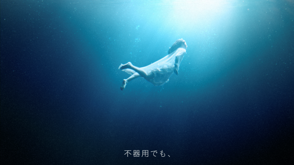 そこは時間が止まったかのような、深い青と静寂に包まれた神秘的な世界。彼女たちはそっと目を閉じ、心の声に耳を傾けながら、深いところまで沈んでいきます。目を開けると、水面を照らすように一筋の光が現れます。そして、2人の心の迷いが消え、光が指し示す、自分らしく輝ける方向へと進んでいきます。水面から顔を出すと、「うるおえ、自分。」というメッセージと共に、髪をかきあげ、前向きな表情で大きく息を吸い込みます。シャワーシーンでは、髪も心もうるおいで満たされながら、心地よさそうにシャンプーをする場面も。ラストは、水まとう、うるおい髪を嬉しそうに鏡でチェックするシーンで締めくくります。