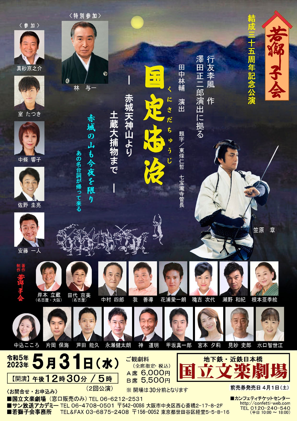 一般社団法人若獅子会(代表:笠原 章)主催、若獅子結成35周年記念公演『国定忠治』が3都市にて上演されます。