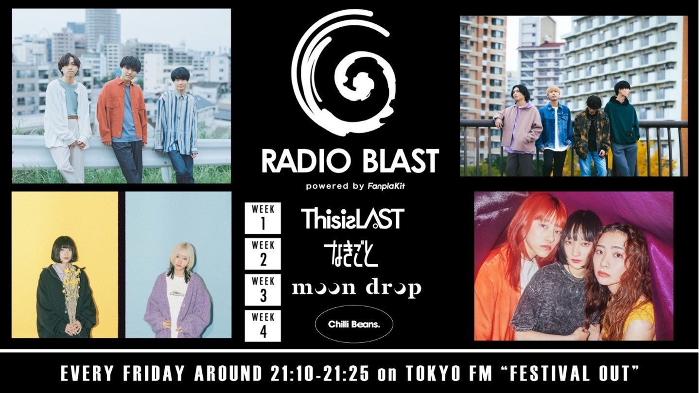 新パーソナリティは、次世代を担う音楽アーティストに幅広く利用されている『Fanpla Kit』が応援し、今の音楽シーンで注目を集める、This is LAST、なきごと、moon drop、Chilli Beans.の4アーティストが週替わりで担当することに決定しました。初回の4月7日(金)は第1週を担当するThis is LASTが登場し、2週目は、なきごと、3週目は、moon drop、4週目は、Chilli Beans.が担当。第5週がある月はスペシャルゲストとしてアーティストが登場する予定です。各アーティストの個性が光る15分のプログラムにぜひご期待ください。また、『Fanpla Kit』を活用した各アーティストの公式サイトでは、番組で放送されないアフタートークも配信されますので、そちらもあわせてお楽しみください。